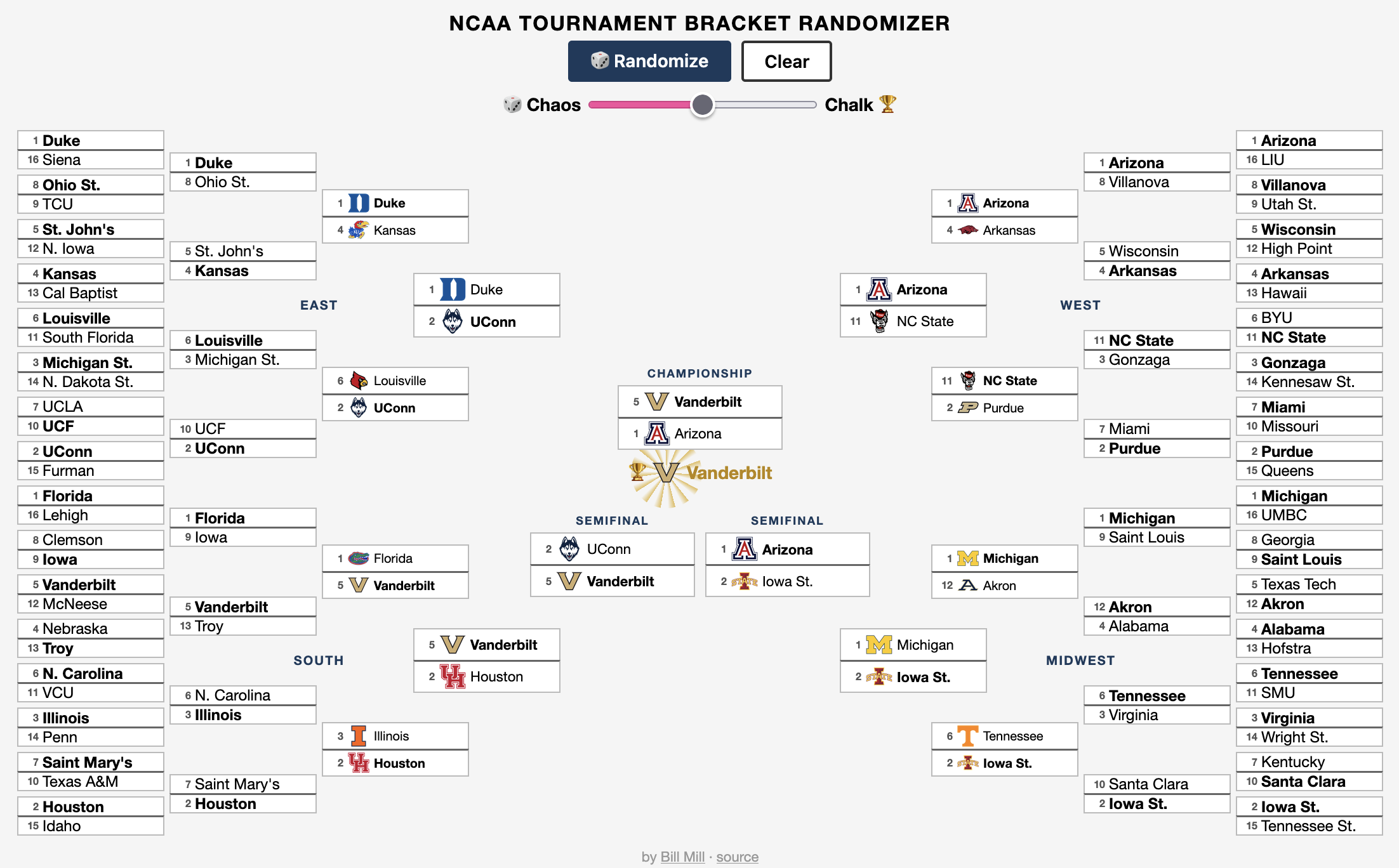 If you need a bracket for your office pool or you just want to click "randomize" until your favorite team wins, give it a shot!